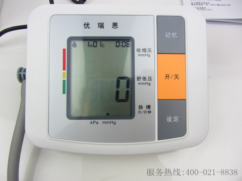 Product description:U80B-CN002 double the 90 sets of memory 1 host and 20 / box 425*330*390mm Captain 130mm* 108mm* thick 58mm wide Wide screen 44mm* screen with high 55mm IHB irregular heartbeat detection of 2 arm band Automatic pressure measuring 3 WHO classification of blood pressure 4 box AC/DC power supply interface + speech for 5 batteries Specifications. 1.LCD size: 55 x 44; Group 2.2x90 memory function; Average 3 3 recent measurements; 4 Classification of blood pressure (WHO) index; 5 irregular heart beat (IHB) index; The 6 year / month / day / time function; 7 precision: the pressure of + / - 3mmHg; pulse + / -5%; 8 automatic inflation and deflation; The 9 is powered by 4 AA size alkaline batteries or AC / DC power supply; 10 speech design; 11 automatic power off function